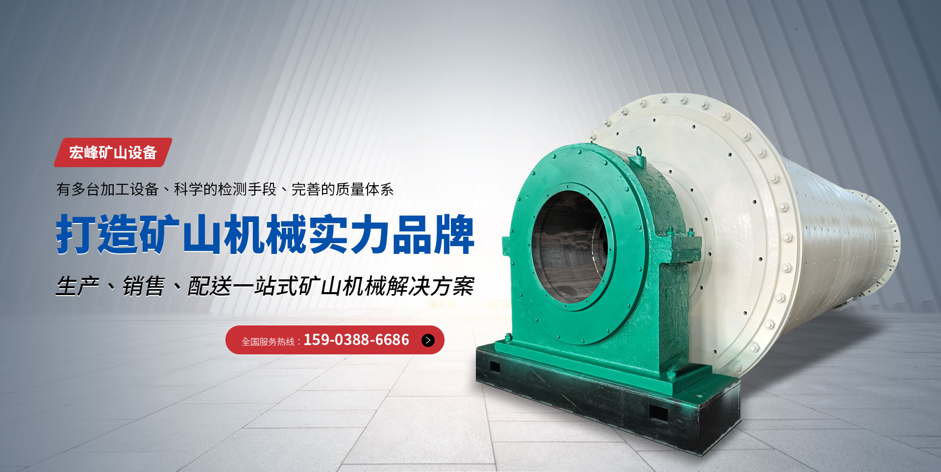 新鄉(xiāng)市宏峰礦山設(shè)備有限公司主要產(chǎn)品有:球磨機(jī)、破碎機(jī)、烘干機(jī)、回轉(zhuǎn)窯、砂石生產(chǎn)線等,生產(chǎn)出來的球磨機(jī)、烘干機(jī)、回轉(zhuǎn)窯,得到客戶的良好贊譽(yù)!  宏峰礦山設(shè)備有限公司,不斷學(xué)習(xí)、不斷自我完善。有多臺(tái)加工設(shè)備、科學(xué)的檢測(cè)手段、完善的質(zhì)量體系。近幾年來,企業(yè)先后從各大專院校引進(jìn)了人才,現(xiàn)以加工、組裝為主,生產(chǎn)選礦、建材、水泥設(shè)備。  本公司有標(biāo)準(zhǔn)化廠房?jī)勺鞣N大、中型金屬加工、鉚焊、裝配設(shè)備。其中具有中、高職稱的管理干部和工程人員8名,形成了技術(shù)力量。本公司遵循對(duì)每道工序負(fù)責(zé),對(duì)每臺(tái)產(chǎn)品負(fù)責(zé),對(duì)每位用戶負(fù)責(zé)的質(zhì)量方針,竭誠(chéng)為用戶服務(wù)。我們可以根據(jù)礦質(zhì)情況和顧客的需要設(shè)計(jì)出適合您現(xiàn)狀的工藝,制定適合您的工藝流程。  公司主要生產(chǎn)有各種大、中型破碎設(shè)備、制砂設(shè)備、選礦設(shè)備、磨粉設(shè)備等系列產(chǎn)品。具體產(chǎn)品有顎式破碎機(jī)、錘式破碎機(jī)、反擊式破碎機(jī)、復(fù)合式破碎機(jī)、沖擊式破碎機(jī)(制砂機(jī))、對(duì)輥破碎機(jī)及破碎生產(chǎn)線輔助設(shè)備皮帶輸送機(jī)、振動(dòng)篩、給料機(jī)等破碎設(shè)備;制砂機(jī)、皮帶輸送機(jī)、振動(dòng)篩、洗沙機(jī)等制砂生產(chǎn)線設(shè)備;球磨機(jī)、烘干機(jī)、浮選機(jī)、磁選機(jī)、分級(jí)機(jī)、濃縮機(jī)、螺旋溜槽、高頻篩、成品篩和回轉(zhuǎn)窯等選礦生產(chǎn)線設(shè)備;雷蒙磨粉機(jī)、高壓微粉磨、電磁振動(dòng)給料機(jī)、提升機(jī)及各種雷蒙磨配件。  本廠愿與海內(nèi)外朋友開展交流與合作,竭誠(chéng)為顧客提供產(chǎn)品和服務(wù),熱誠(chéng)歡迎您光臨本廠指導(dǎo)和洽談業(yè)務(wù)。